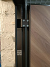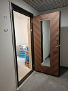 Рациональная дверь для квартиры: снаружи — стойкое молотковое покрытие, которое не боится ударов тележек и ключей соседей, внутри — тёплая МДФ-панель под орех с крупным вертикальным зеркалом. В узком коридоре оно работает как световой канал и мгновенно «расширяет» прихожую, а аккуратная фрезеровка добавляет графики без лишнего блеска. Два разнесённых замка с многоточечным запиранием, глазок, плотный прижим и контуры уплотнения отвечают за тихое закрывание и уверенную защиту. Конструкция рассчитана на эксплуатацию в подъезде: металл снаружи сохраняет вид при активной эксплуатации, МДФ внутри приятен на ощупь и легко моется. Продуманная, сдержанная, для тех, кто ценит практичный дизайн без компромиссов.