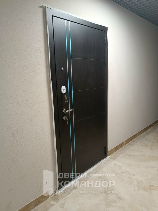 «Теплолюкс» — продуманная входная дверь для квартиры, которая сразу настраивает на порядок и спокойствие. Снаружи — тёмная МДФ-панель с сдержанной горизонтальной фрезеровкой: не бликует, терпимо к повседневным касаниям и легко очищается. Внутри — белое дерево с большим зеркалом во весь рост: прихожая выглядит светлее и просторнее, сборы перед выходом занимают меньше времени. Полотно плотно прижимается по контуру, тише хлопает и лучше изолирует запахи и шум подъезда. Два раздельных замка работают мягко, глазок даёт контроль на площадке, на петлевой стороне — противосъёмные штыри. Получается гармоничный, практичный вход, где эстетика и удобство идут рука об руку.